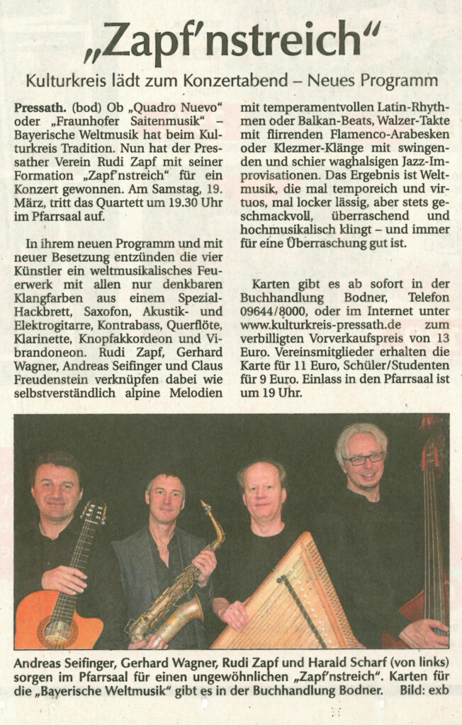 Konzertabend mit „Zapf’nstreich“von adminin Pressean Veröffentlicht am 13/03/202613/03/2026 04. März 2017, Der Neue Tag FacebookShare on XLinkedInWhatsAppEmailCopy Link